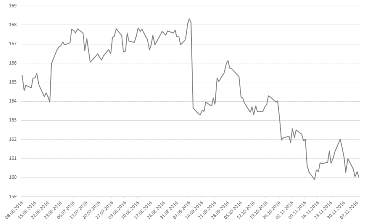 Entwicklung Euro-Bund Future seit 01.06.2016